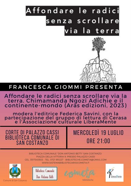 Presentazione del libro di Francesca Giommi, Affondare le radici senza scrollare via la terra. Chimamanda Ngozi Adichie e il continente-mondo (Aras 2023).