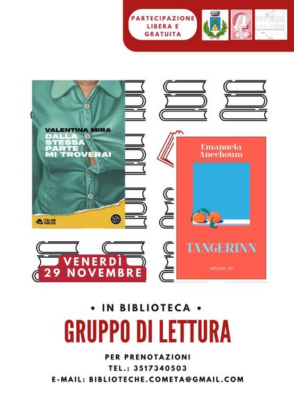 La partecipazione è libera e gratuita, è consigliabile prenotare scrivendo al numero 351 374 0503 o a biblioteche.cometa@gmail.com