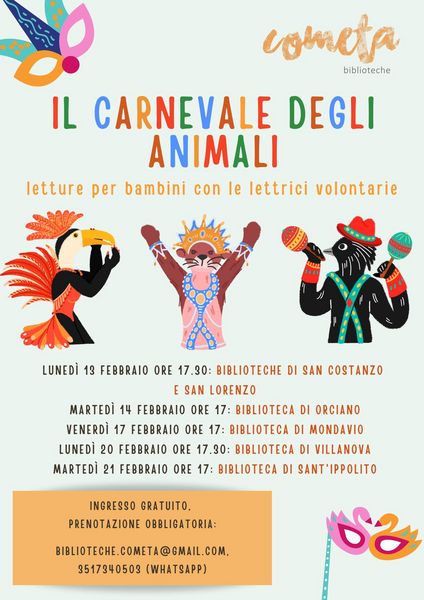 L'ingresso è gratuito con prenotazione obbligatoria: inviare una mail a biblioteche.cometa@gmail.com oppure un messaggio al cel. 3517340503 (whatsapp)