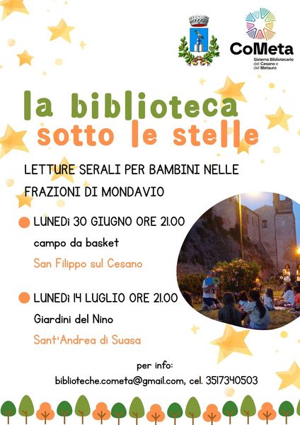 Per informazioni scrivere a biblioteche.cometa@gmail.com o WA al 3517340503