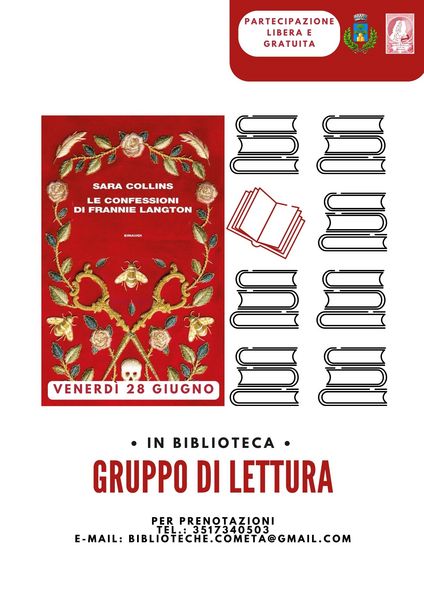 La partecipazione è libera e gratuita, è consigliabile prenotare scrivendo al numero 351 374 0503 o a biblioteche.cometa@gmail.com
