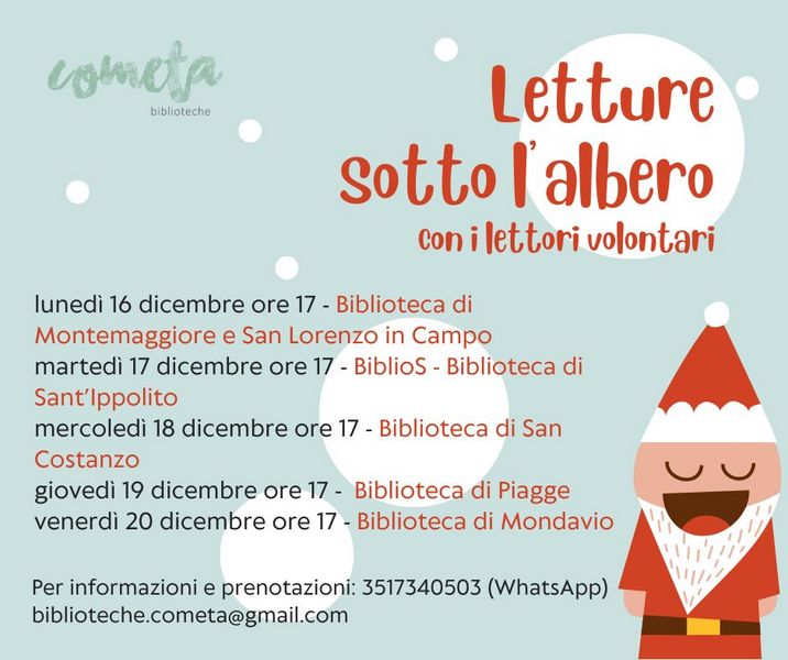 Letture di Natale a cura dei bibliotecari e dei lettori volontari, a ingresso libero con prenotazione obbligatoria.