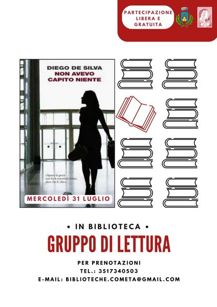 La partecipazione è libera e gratuita, per questo appuntamento è necessaria la prenotazione scrivendo al numero 351 374 0503 o a biblioteche.cometa@gmail.com