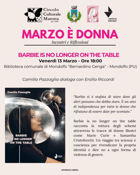 Camilla Pazzaglia presenta Barbie is no longer on the table (Ventura 2024), dove racconta la rottura degli schemi da parte di donne illustri che hanno aperto la via a chi è venuto dopo di loro.