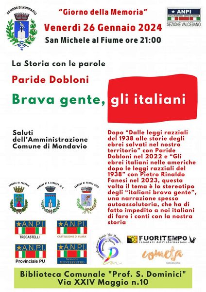 L'incontro è organizzato dal Comune di Mondavio, ANPI Valcesano e Gruppo Fuoritempo.