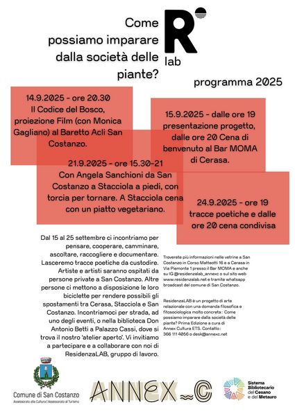 Cercare, ascoltare, tradurre, sperimentare e magari capire sarà il compito di ResidenzaLAB - un progetto di fitosociologia o di ecofemminismo o di ecologia sociale o... semplicemente una ricerca su come si possono trovare nuovi modi di ascoltare, dialogare e condividere veramente.
