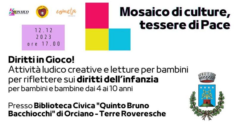 Nell’ambito del progetto "Mosaico di culture, tessere di pace" cofinanziato dalla Regione Marche, Dipartimento Politiche Sociali, lavoro, istruzione e formazione, nell’ambito del bando Welfare Culturale, l'associazione L’Africa Chiama presenta Diritti in Gioco! attività ludico creative e letture per riflettere sui diritti dell'infanzia per bambini e bambine dai 5 ai 10 anni.