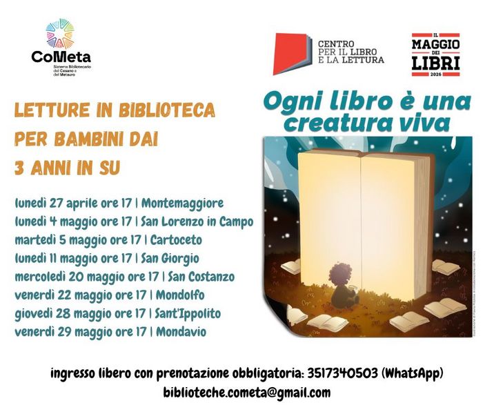 L'ingresso è gratuito con prenotazione obbligatoria: inviare una mail a biblioteche.cometa@gmail.com oppure un messaggio al cel. 3517340503 (whatsapp)