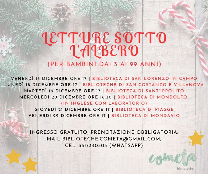 L'ingresso è gratuito con prenotazione obbligatoria: inviare una mail a biblioteche.cometa@gmail.com oppure un messaggio al cel. 3517340503 (whatsapp)